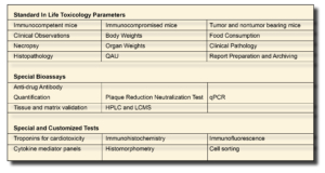 Special Bioassays Anti-drug Antibody Quantification Plaque Reduction Neutralization Test qPCR Tissue and matrix validation HPLC and LCMS