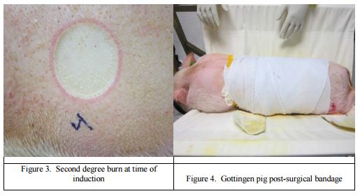 In summary, we at CBI have developed and optimized a 1st, 2nd and 3rd degree thermal dermal burn model using the Gottingen minipig. For our burn studies, we design our studies to optimize the success of the study. This leads to well designed studies with adequate numbers of animals and study endpoints to assure relevance of the data. Initially, preconditioning, acclimation and environmental enrichment are key parts of the study design. This is followed by the procedure and treatment, as well as recovery and healing prior to necropsy. Our methods allow us to evaluate various treatment modalities to assess healing in a manner that is both useful and humane.