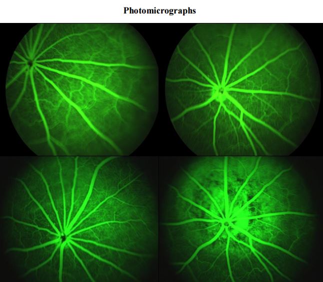 Retinal Imaging: Retinal imaging was performed on Days 14 and 28. Fluorescein dye was administered intravenously and optical density staining was visualized using the Phoenix Research Labs Micron III retinal scanner (Figure 3), including the recording of ~45 sec/animal of high-definition digital video. Videos of the retina immediately after fluorescein dye injection were made.